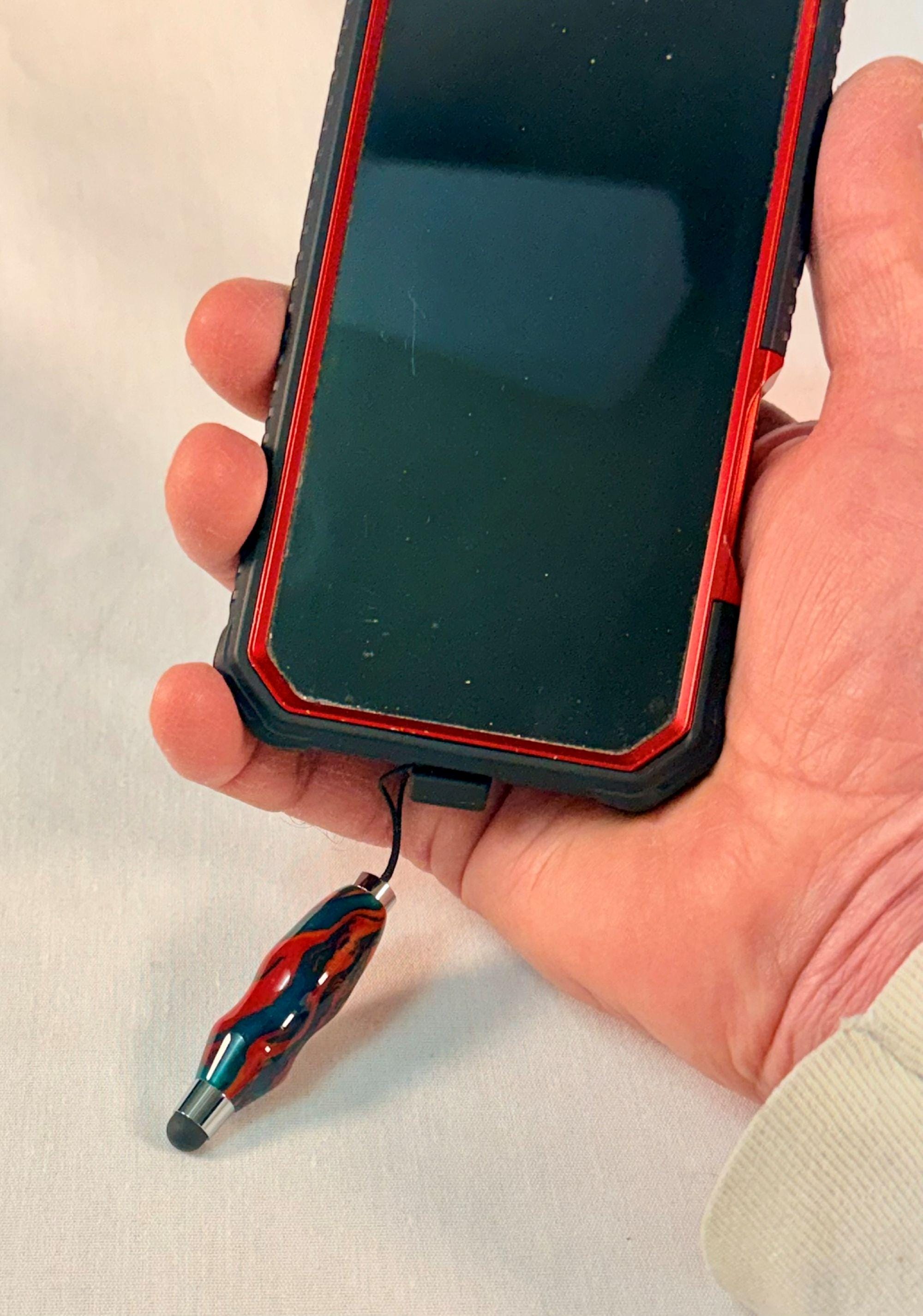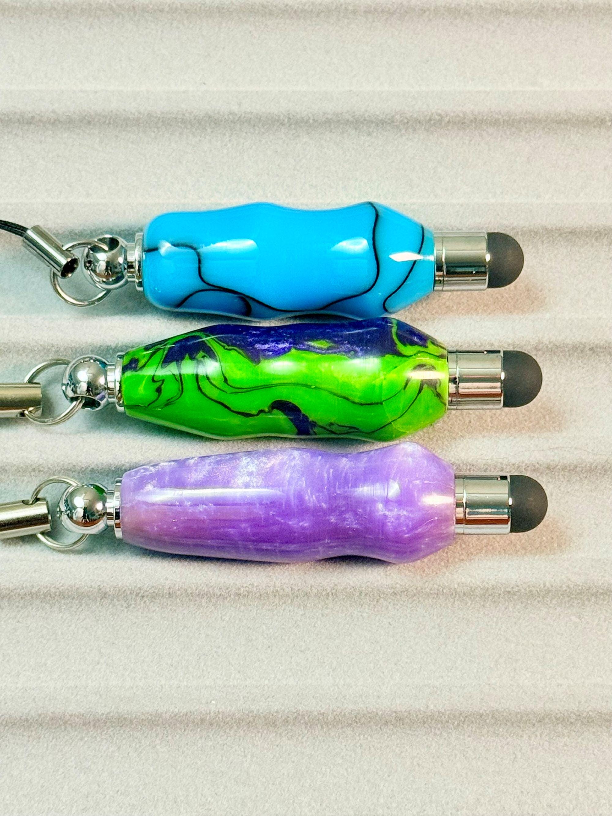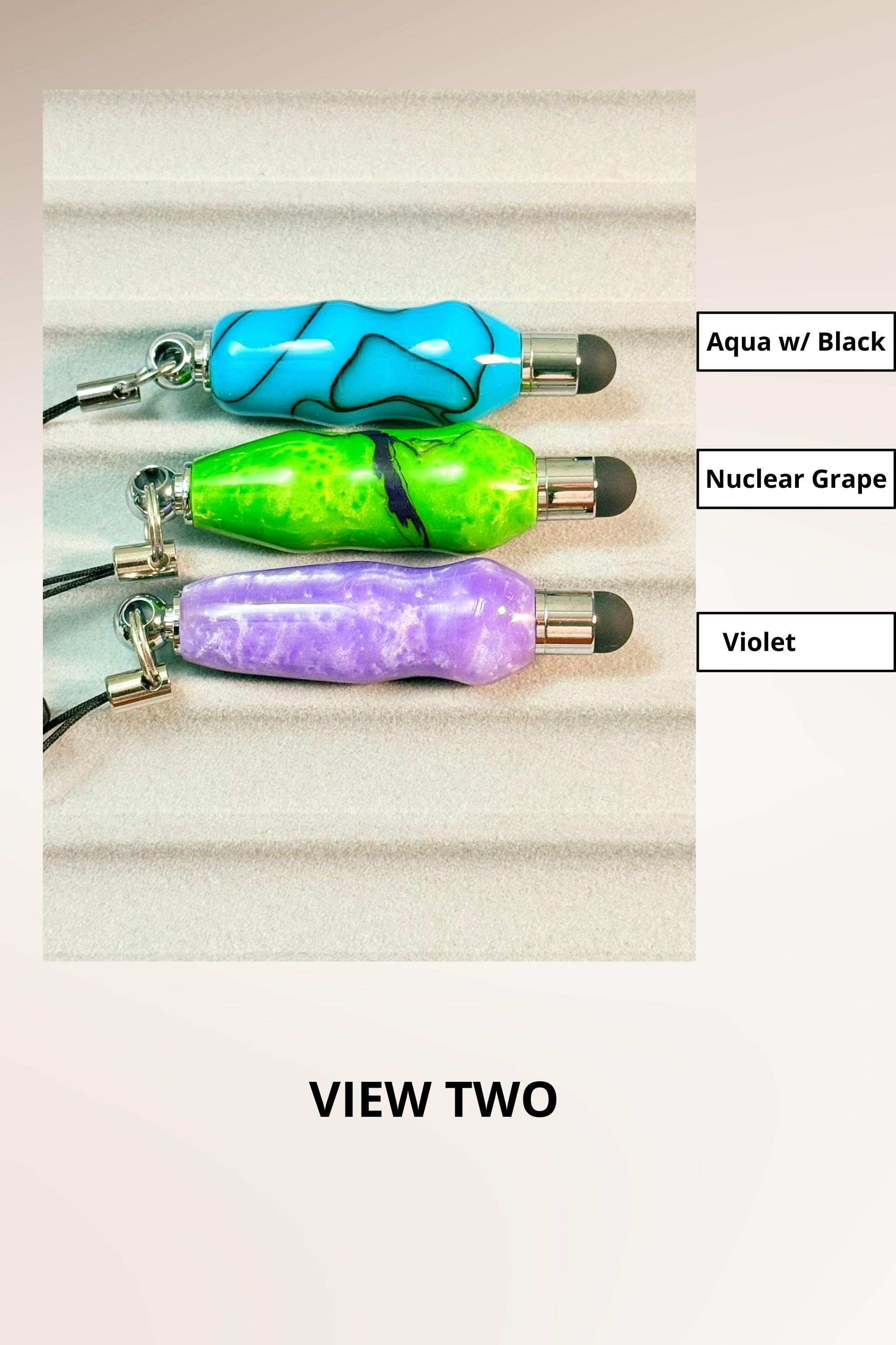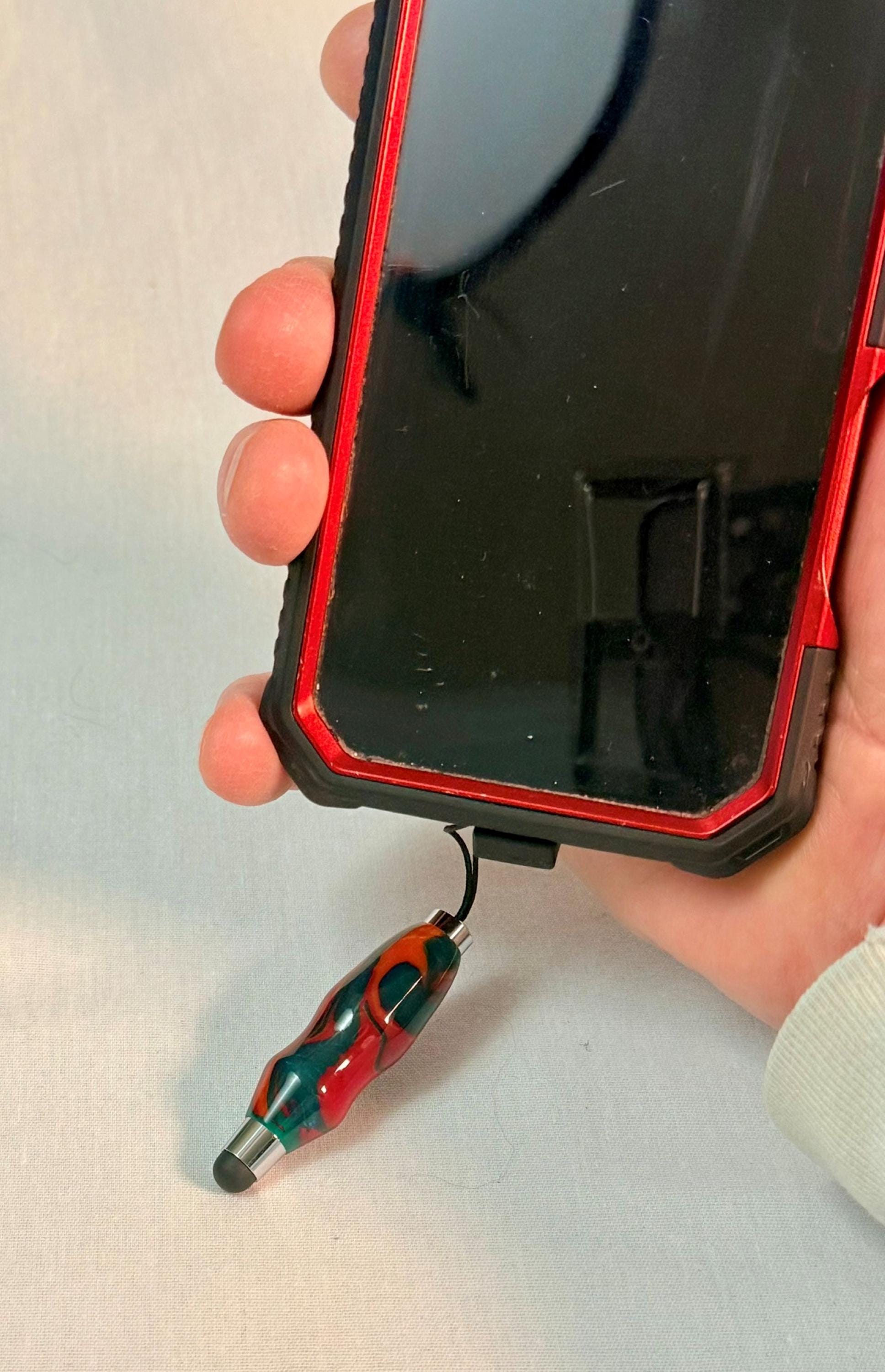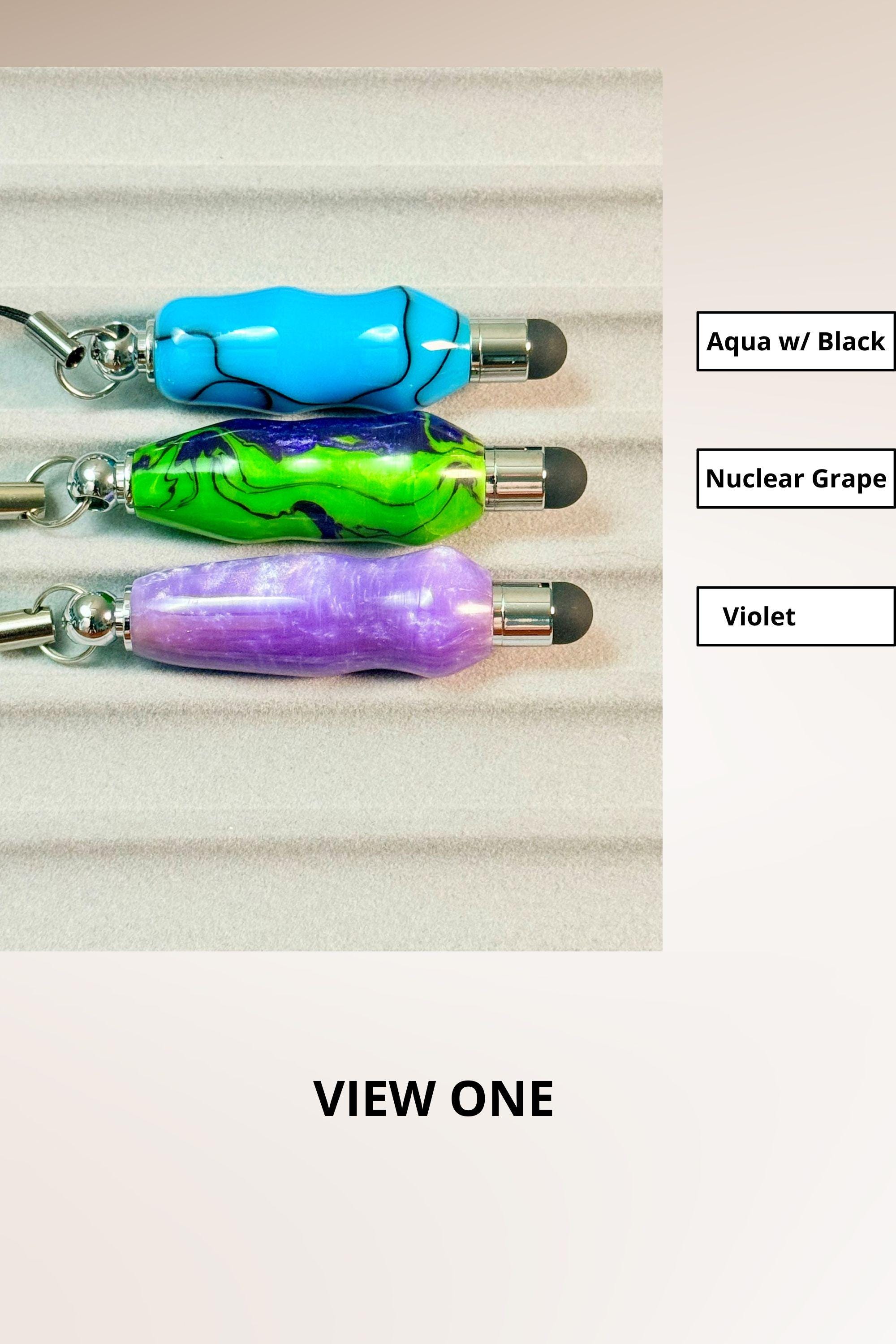 Each charm stylus body is hand-polished for a smooth finish that highlights the unique texture and color of Blue Green Acrylic. The 24K Gold detailing adds a refined touch, making it both functional and beautiful — a perfect handmade tech gift for friends, coworkers, or loved ones.