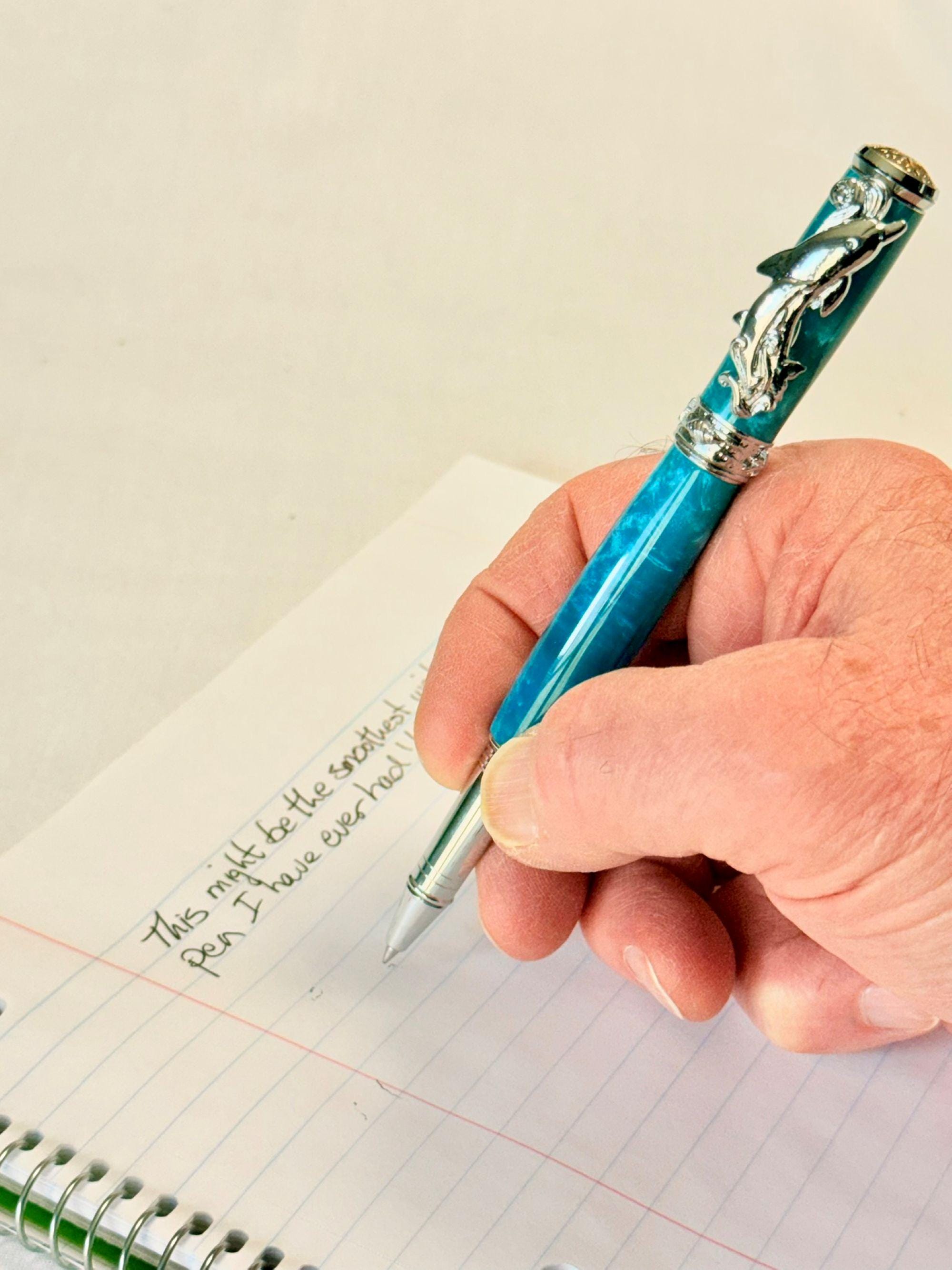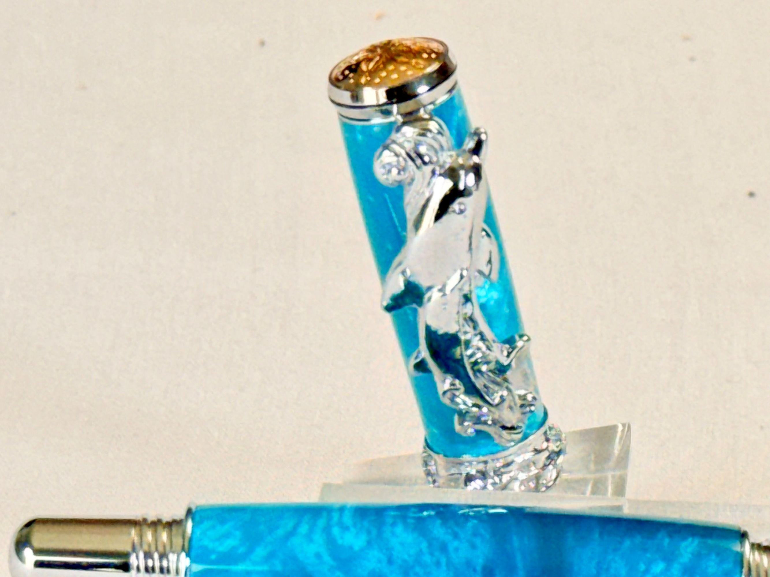 Solve the Winter Doldrums with this Handmade Beach Themed Luxury Writing Instrument. Whether you are looking for memories of the tropical beaches with dolphins playing in the waves, or a unique Valentine's Day Gift, this pen is the solution.