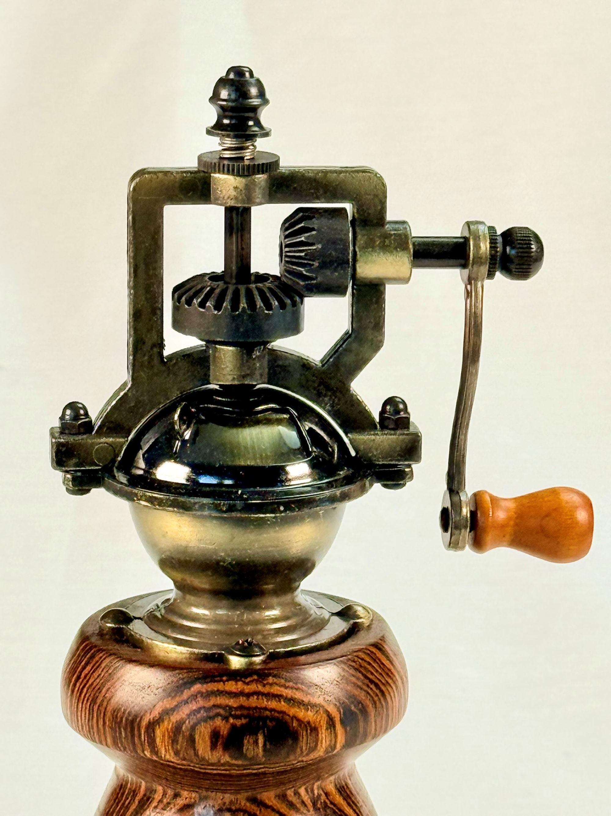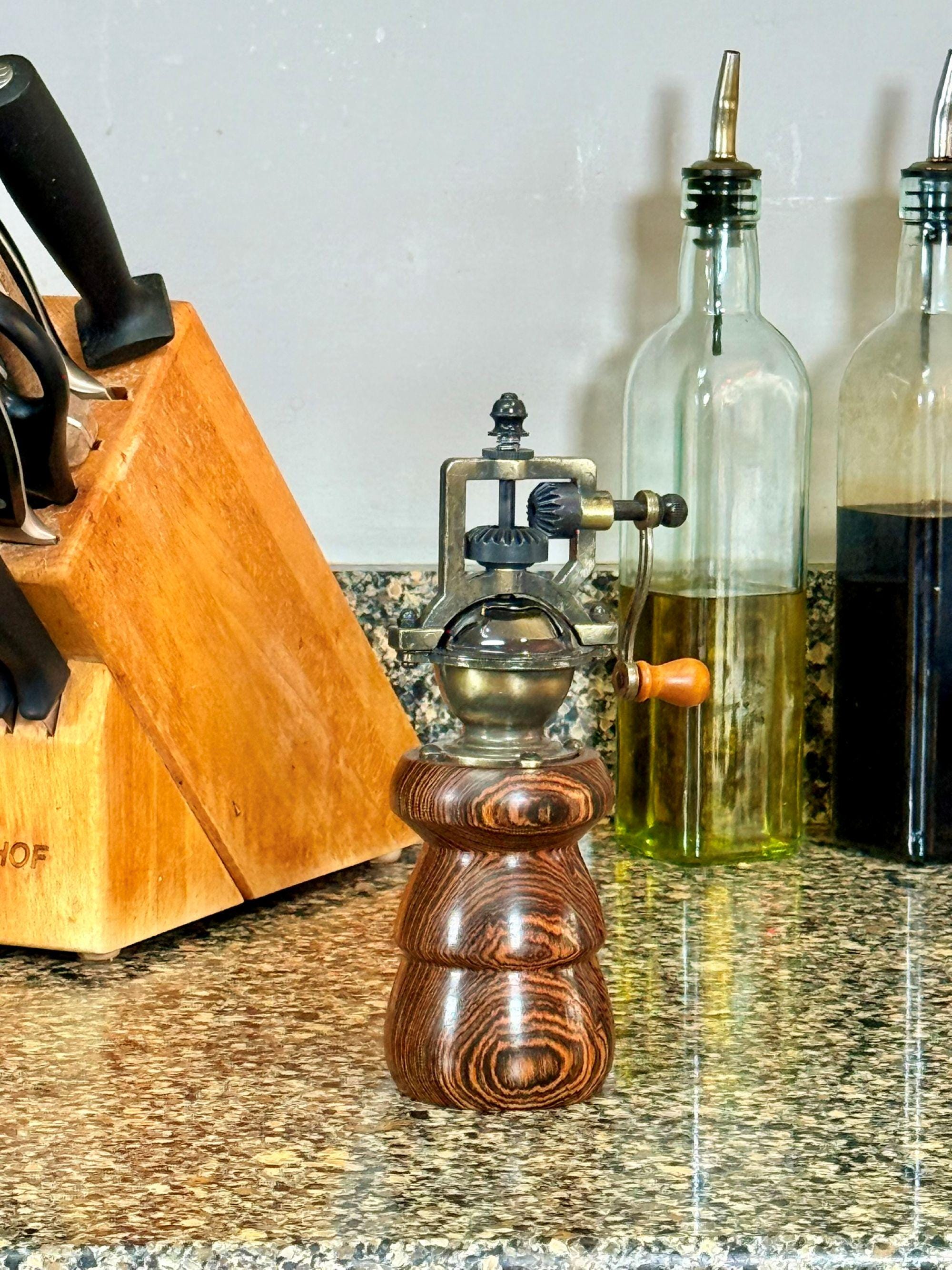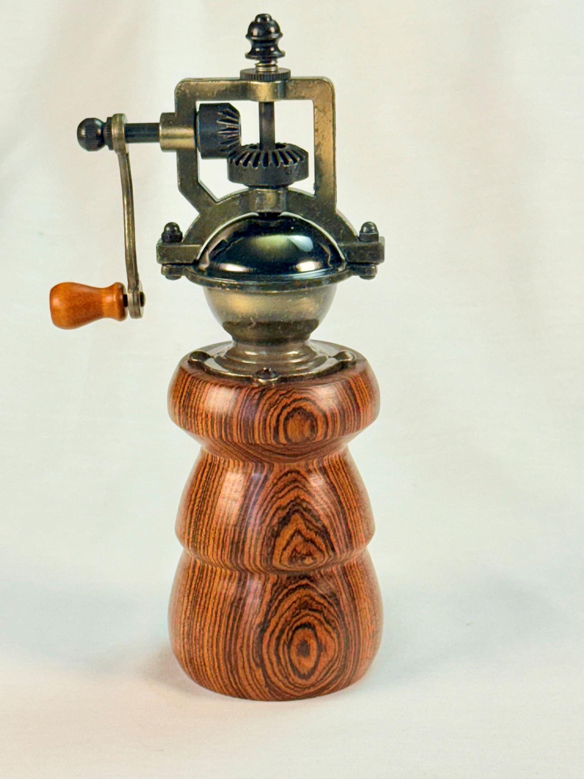 Wood Pepper Mill, Handmade Vintage Style, Bocote Wood. Steampunk Style Pepper Grinder, Rustic Farmhouse