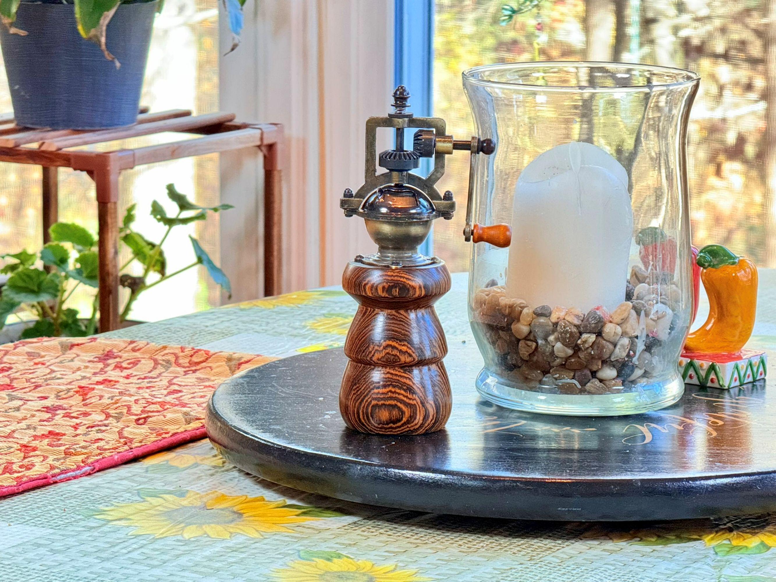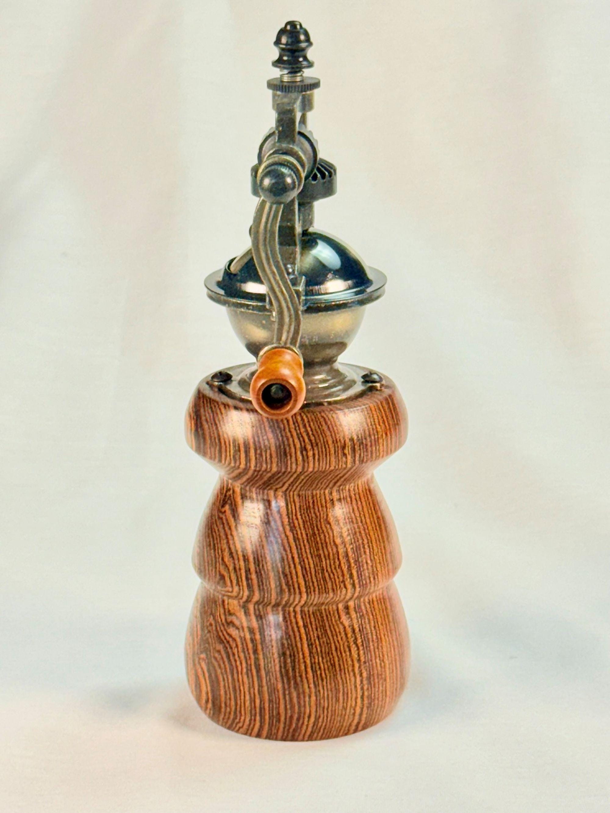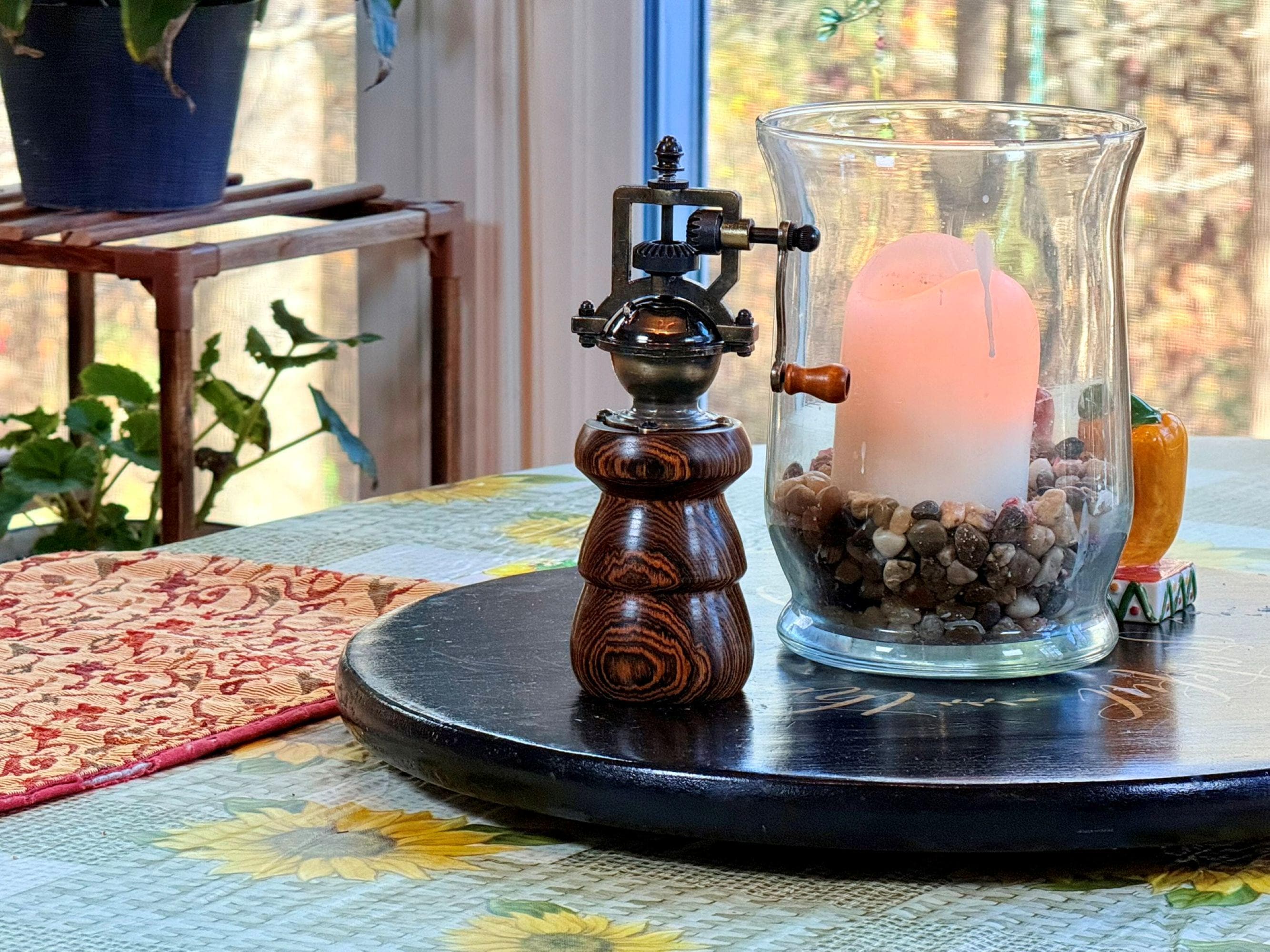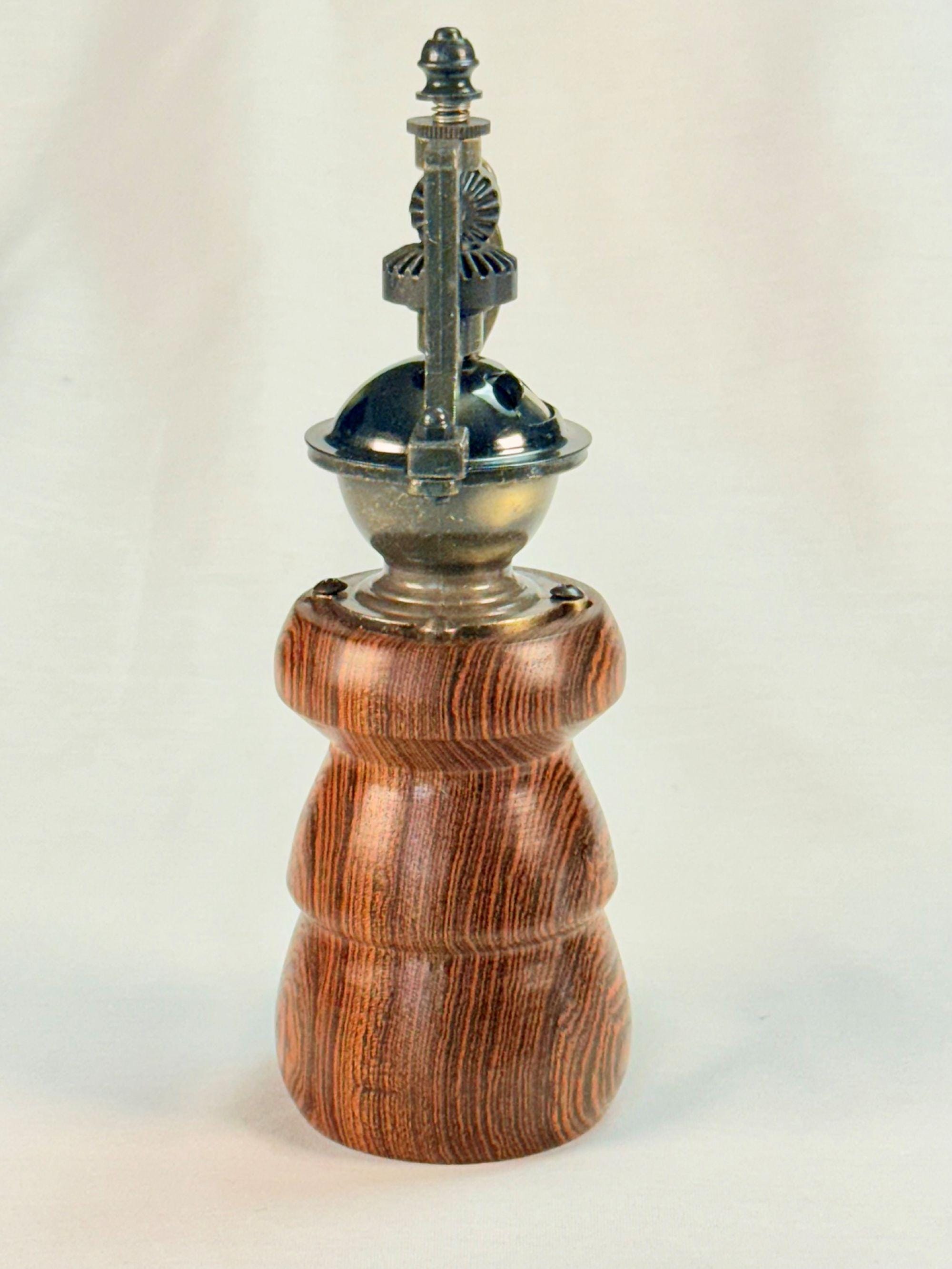 Wood Pepper Mill, Handmade Vintage Style, Bocote Wood. Steampunk Style Pepper Grinder, Rustic Farmhouse