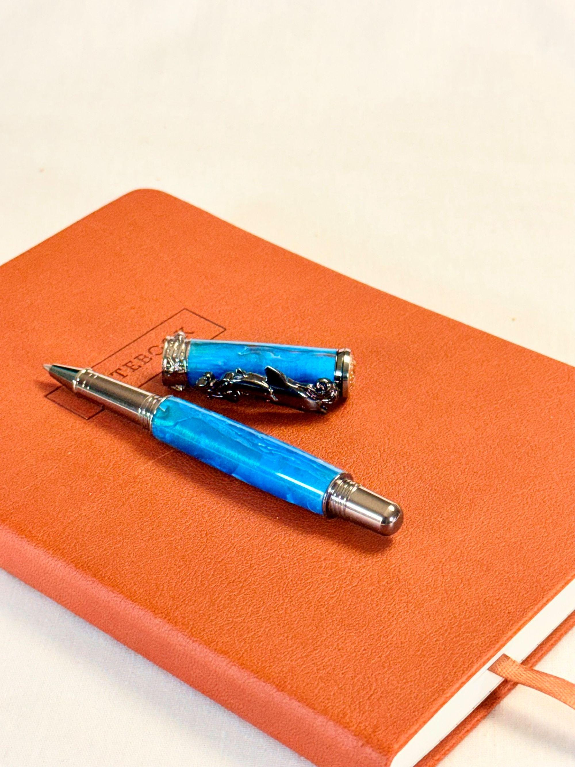 Bring the beauty of the ocean to your desk with this handcrafted beach-themed rollerball pen. Designed for ocean lovers and coastal dreamers, this ocean mist dolphin pen captures the serenity and wonder of marine life.