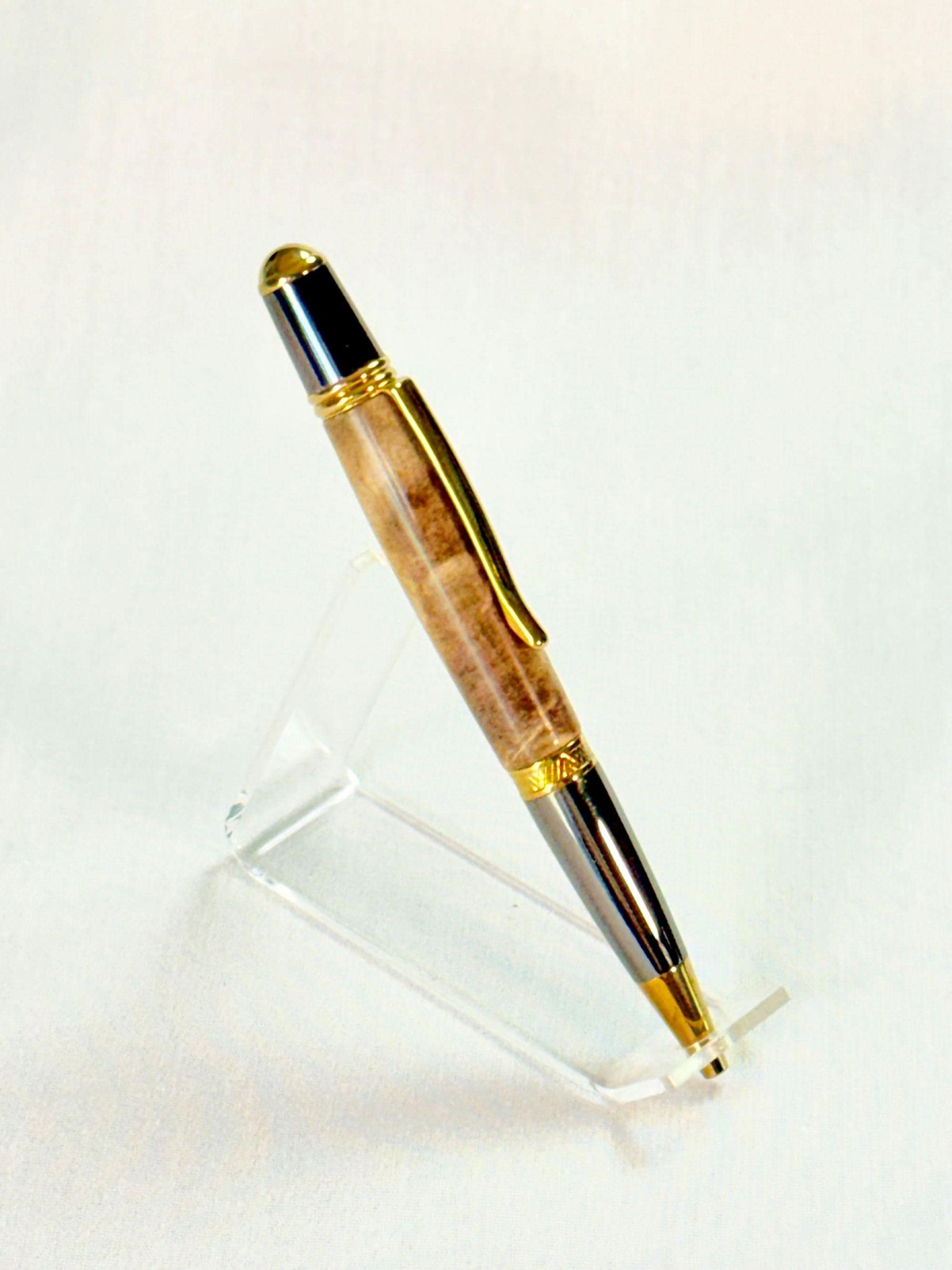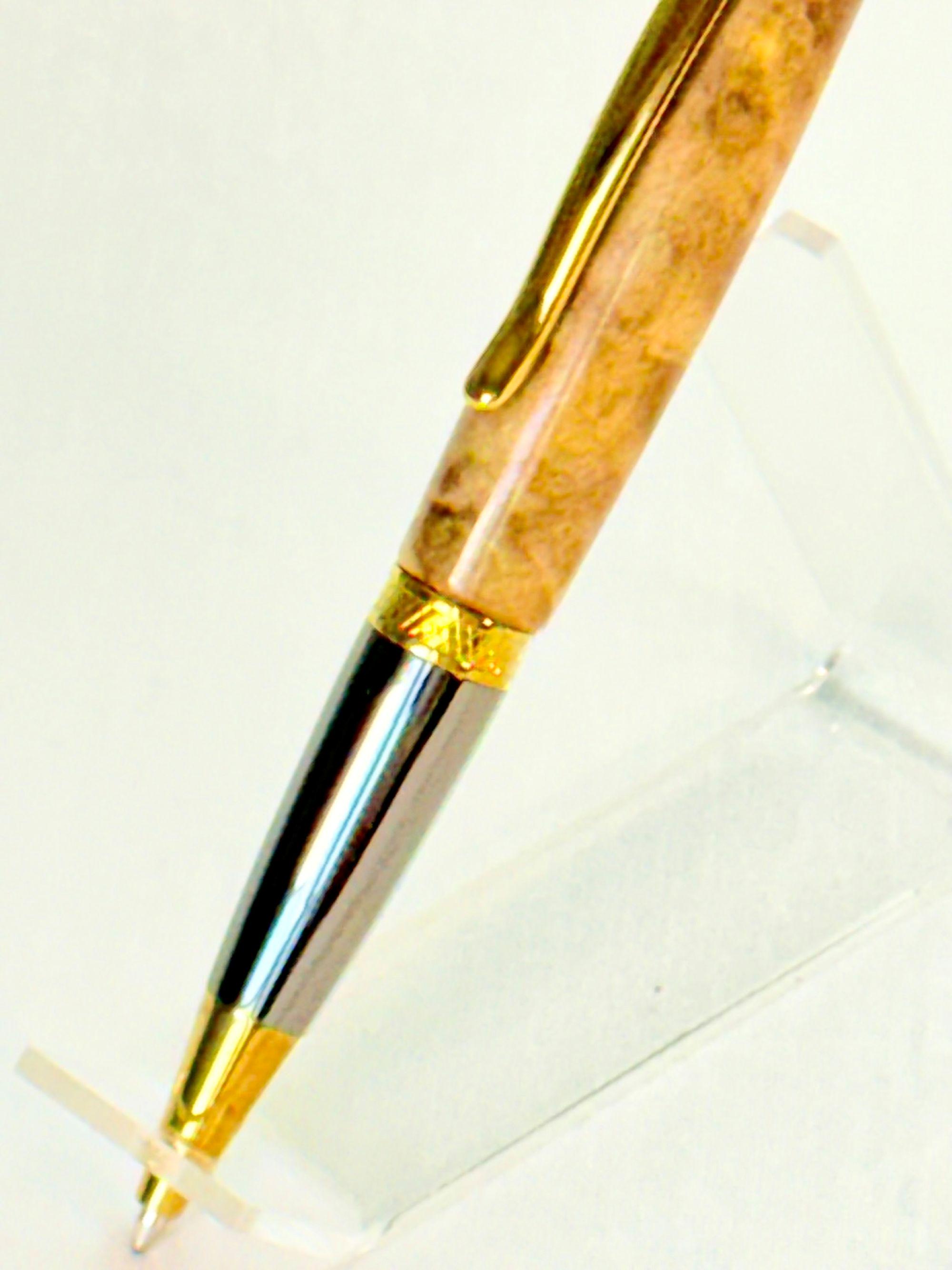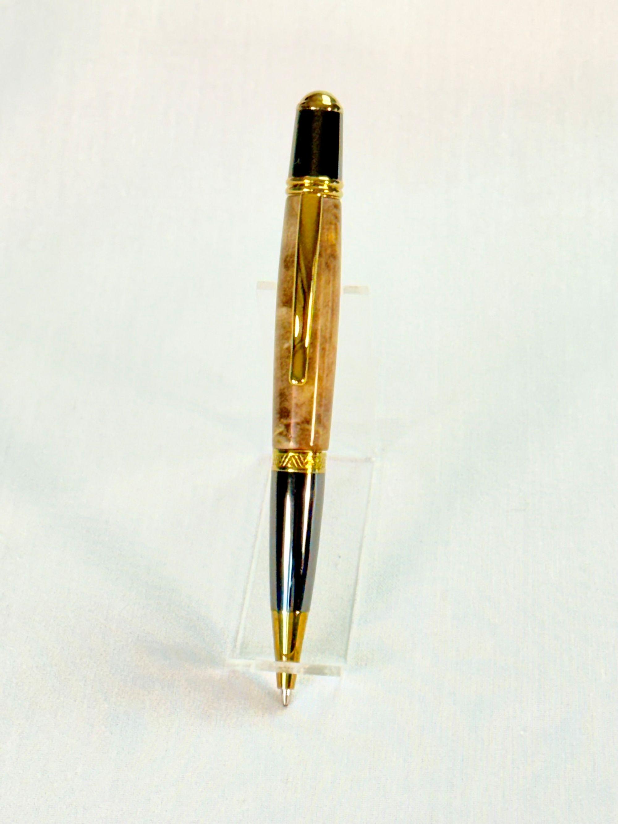 The Buckeye Burlwood Body is beautiful, and matched up with the Ti Gold and Gunmetal trim makes a stunning piece that will be the envy of everyone in the office. A totally great gift for him or her. Choose pen A, B, or C for your order.