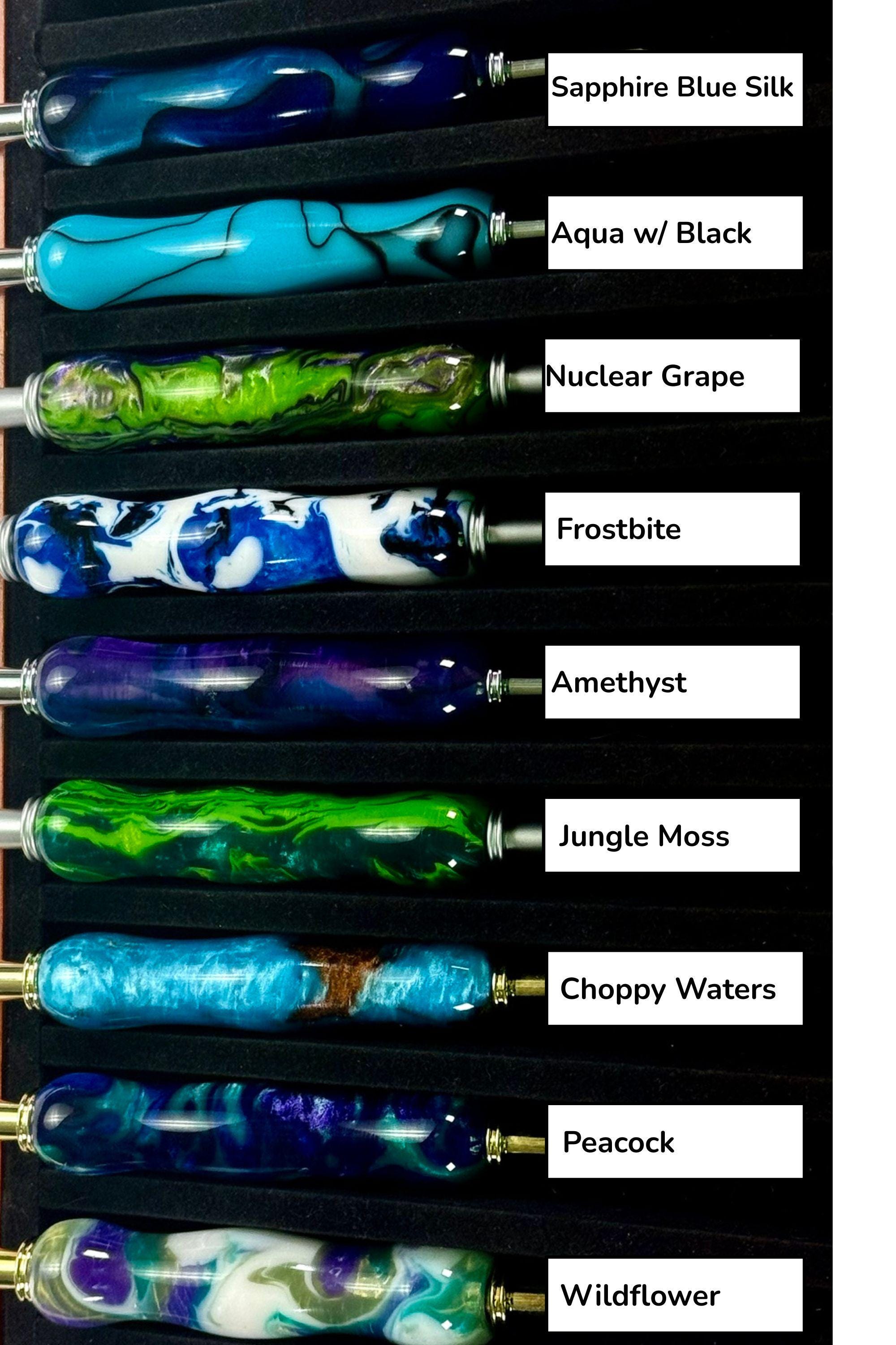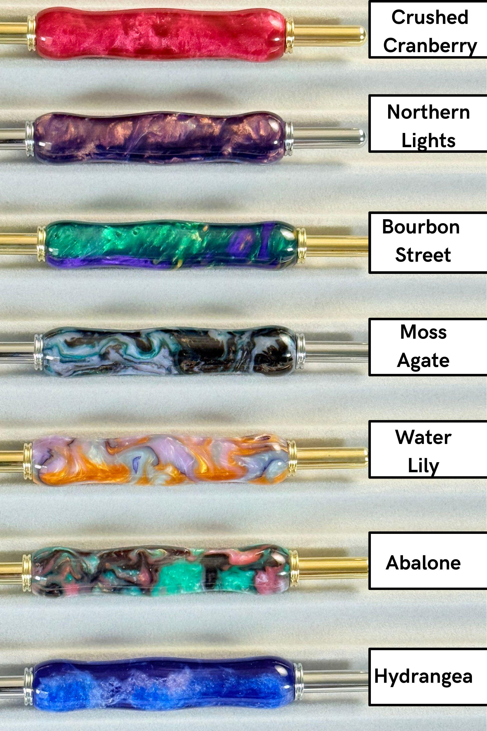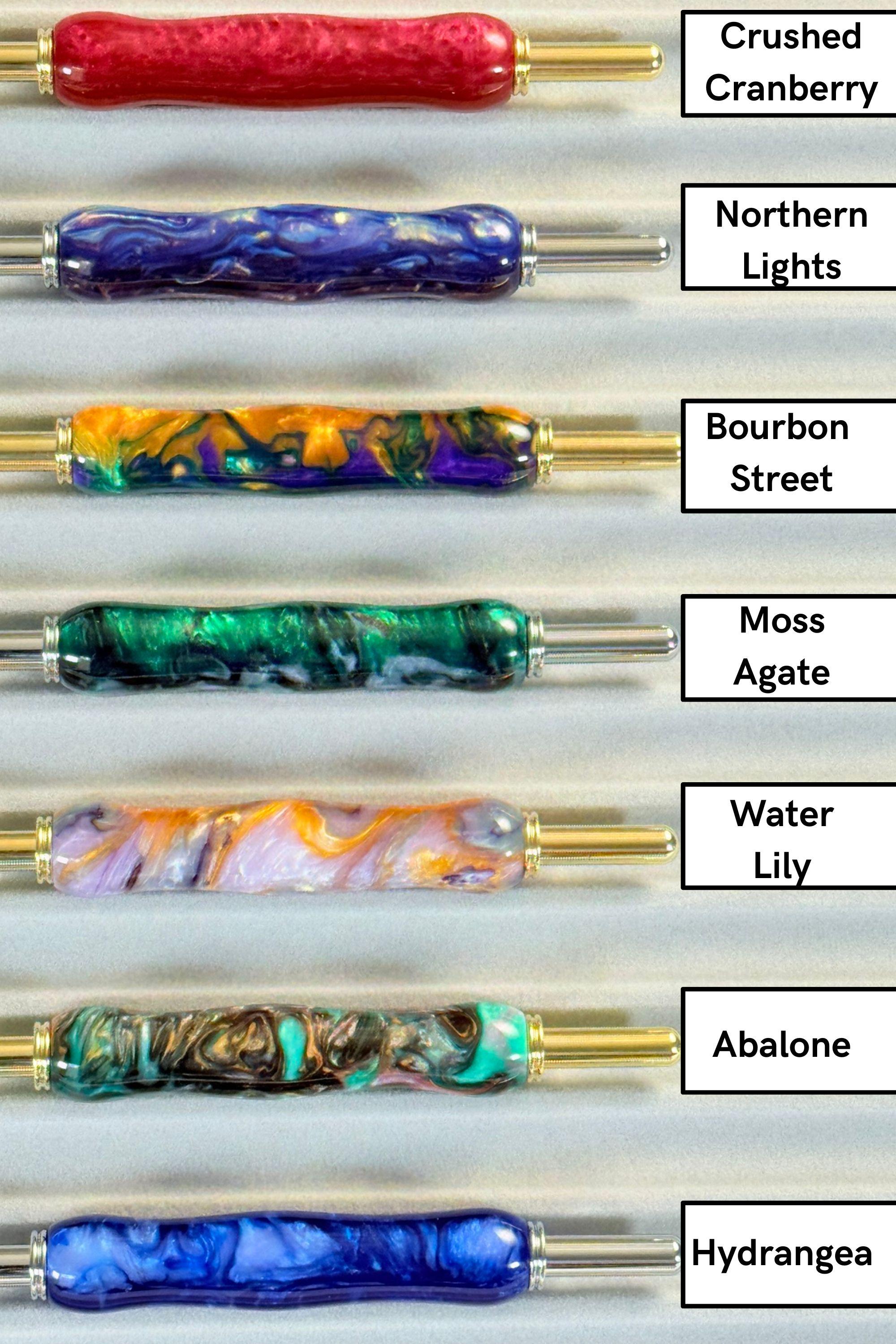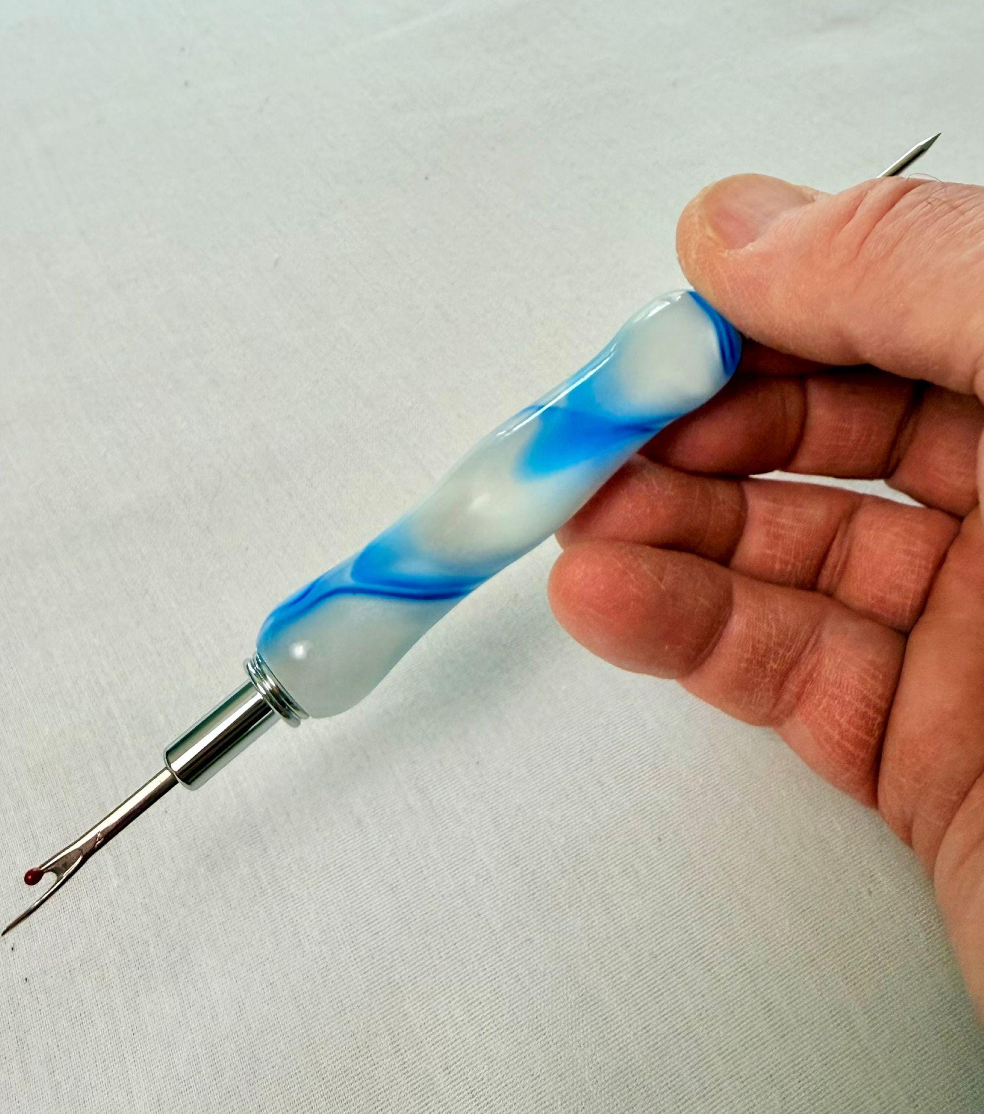 Each seam ripper from ASH Woodshops is individually handmade by me, Alan Huey, in my Wake Forest, North Carolina studio. Every seam ripper body is carefully selected to complement the finest mechanical hardware, using beautiful acrylic on Inlace materials.