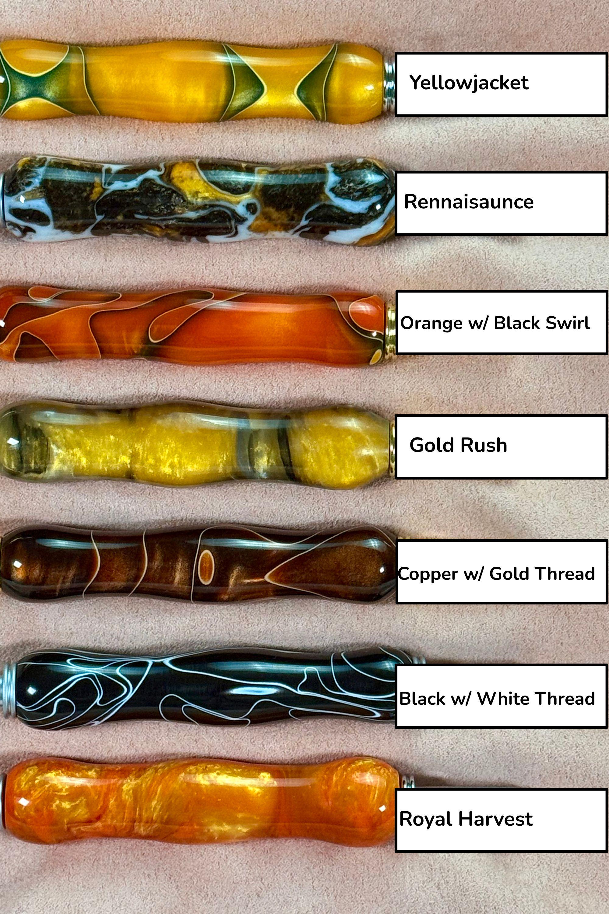 You can personalize your seam ripper by selecting from these vibrant acrylic acetate or Inlace Acrylic body colors and choosing your preferred metal plating finish – available in Chrome, Satin Chrome, or 24K Gold. If you want additional color choices, or if the color you want show out of stock, then check out the other Made-To-Order Listings with the other body material colors. There are over 200 colors in all and there are links below to take you there.