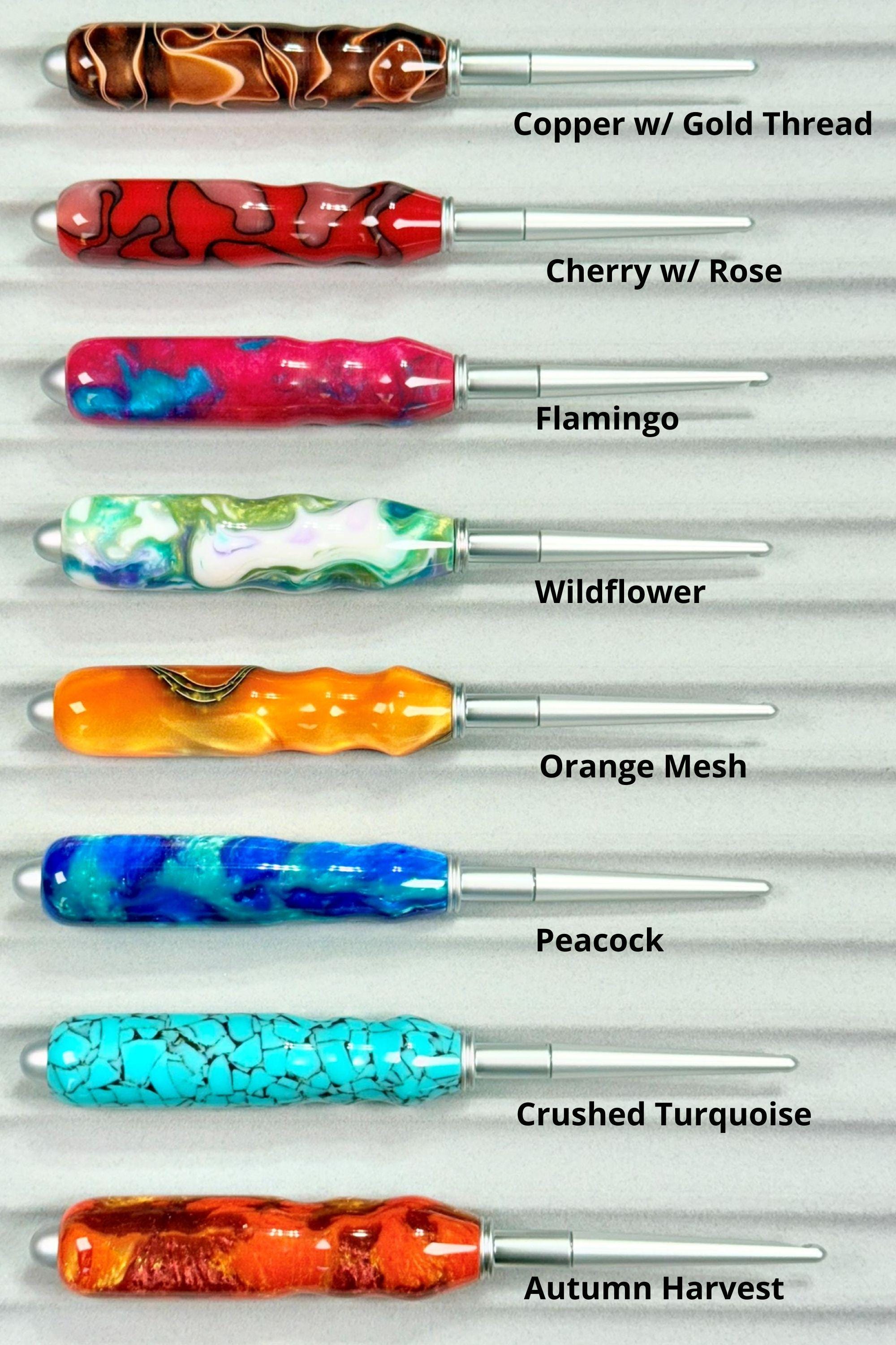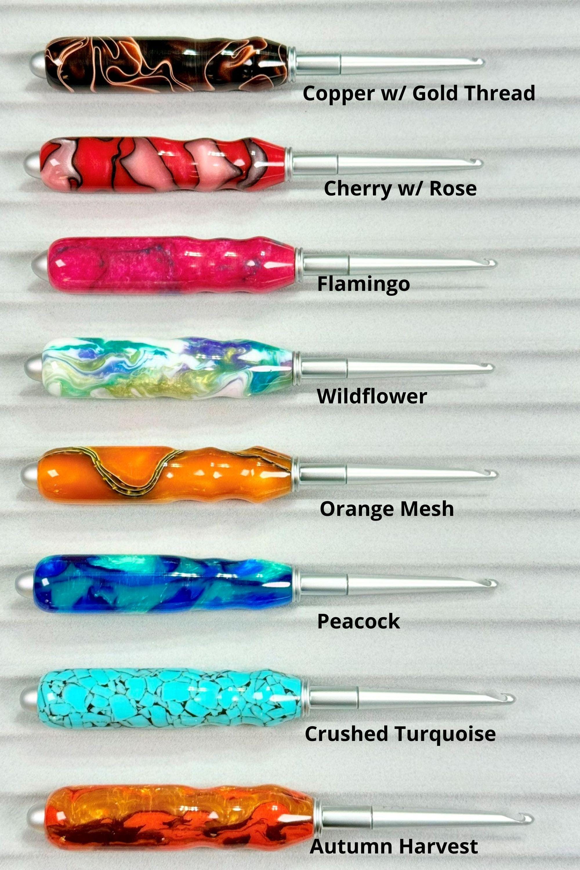 Say goodbye to hand fatigue and hello to comfort with our ergonomic crochet handle, handcrafted to fit naturally in your hand while reducing strain on fingers, wrists, and joints. This listing shows in stock and ready to ship. There are made to order listings available in more than 200 colors!