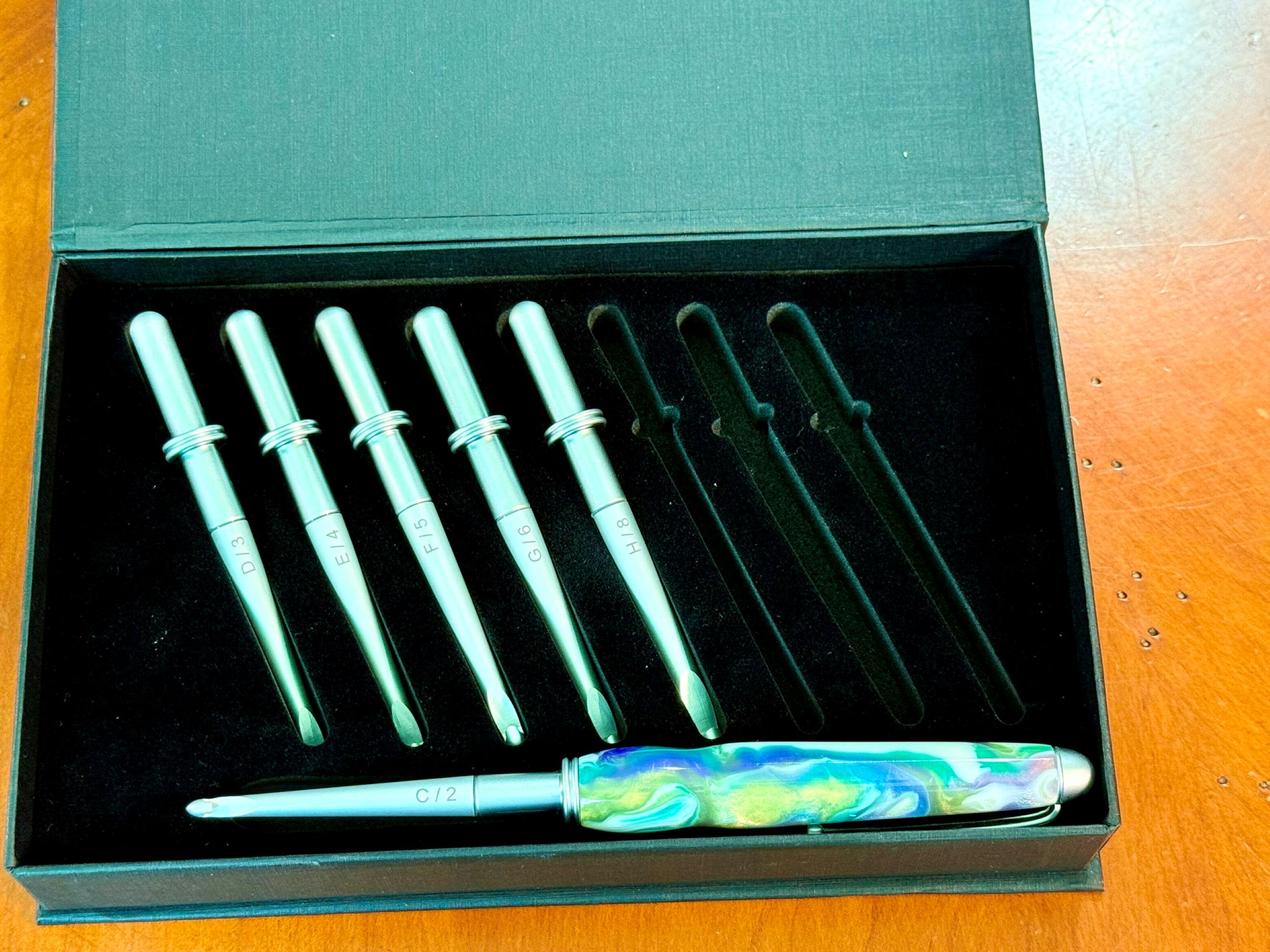 Every ergonomic crochet handle is shaped freehand on a lathe, then finished through a 12–15 step process — sanded, polished, sealed, and buffed to a smooth, glass-like shine using a durable wax for protection and longevity.